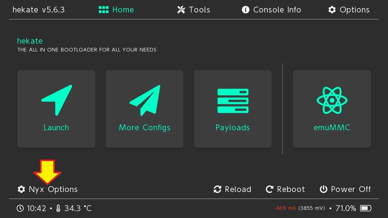 Inserire adesso la microSD nella console e avviare hekate con il payload (.bin) trovato all'interno dello zip stesso.