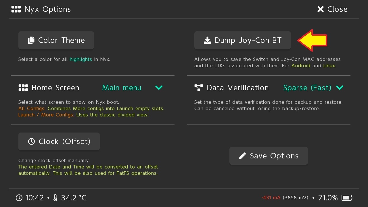 Certi di questo, con i Joy-Con connessi fisicamente alla console, selezionare Nyx Options.