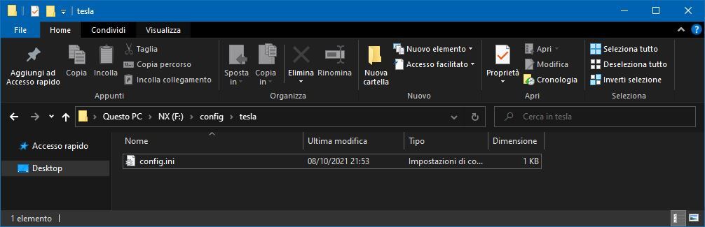 NOTA BENE: essendo Tesla ancora in sviluppo, la cartella ed il file potrebbero ancora non essere presenti all'interno dei file .zip scaricati in precedenza. Basterà andare a creare le cartelle e il file a mano, copiando il contenuto dalla nota sottostante.