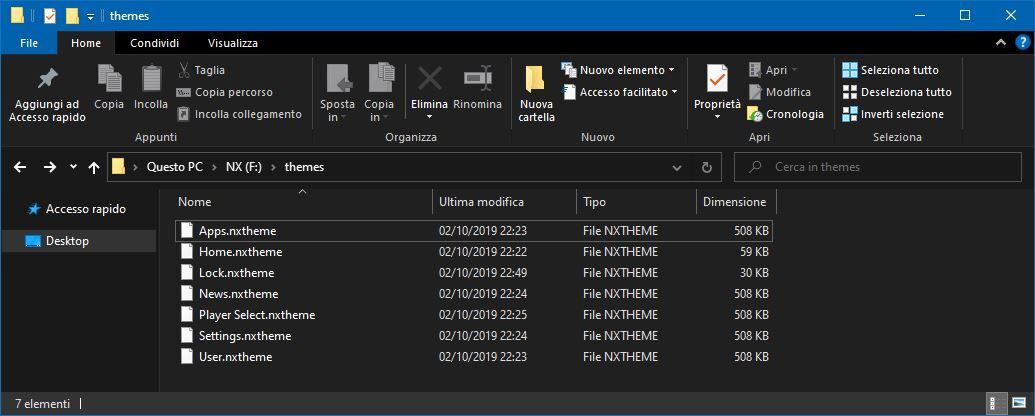 Mettere i file .nxtheme all'interno di una nuova cartella, all'interno della root della microSD, rinominandola themes.
