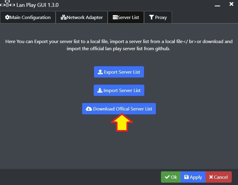 Il programma che si andrà ad utilizzare è LAN Play, che permetterà alla console di connettersi ai server privati appena menzionati, il tutto con l'aiuto dell'interfaccia grafica fornita dal programma LANPlayGUI.