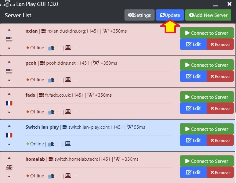 Selezionare adesso Update in alto e lo status dei server verrà aggiornato.